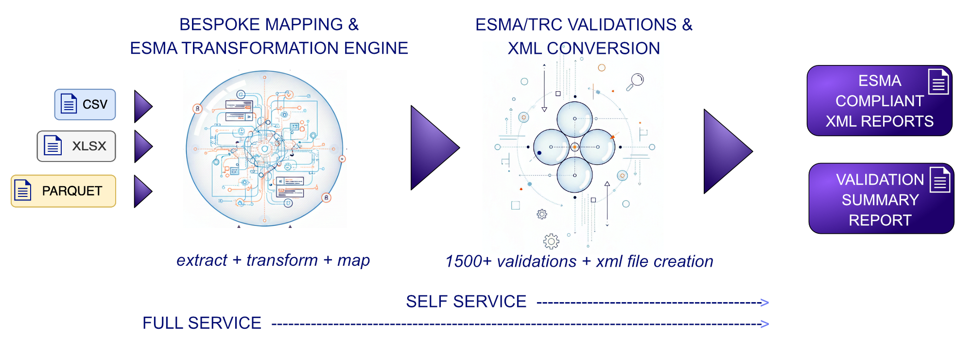 By leveraging our platform and services, you transform your reporting workflow into a scalable, repeatable, and fully automated process. This delegates the burdensome tasks of complex field mapping, extensive regulatory data validation, and regulatory change tracking to us, freeing your internal team to focus on strategic growth and core business innovation while remaining compliant, informed, and on schedule.